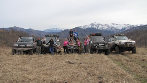 Поэтому поехали дальше,а когда у Сафаря на подъёме кончилась топливо и пришлось переливаться,все устроили фото сессию.