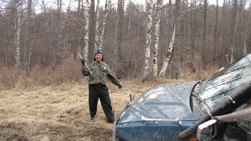 Юра Чижиков дважды разулся,согнул рулевую тягу и согнул два джека, мы решили заночевать прямо на склоне.